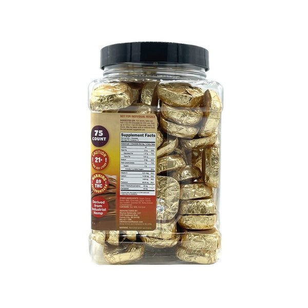 Our current size is 75 count counter jar (20mg Delta 9 per serving - 4500 mg total cannabinoids per jar).